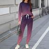 Dámské soupravy 2dílné tričko s kulatým výstřihem a dlouhým rukávem, potištěné tepláky s kapsami