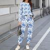 Dámské soupravy 2dílné tričko s kulatým výstřihem a dlouhým rukávem, potištěné tepláky s kapsami