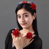Etnický styl růžová pokrývka hlavy a prsten s květinou na prst pro taneční vystoupení a uměleckou zkoušku sponky do vlasů