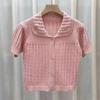 Sladký pletený svetr s výřezy Dámský letní design Jemný vítr Japonské krátké topy Ležérní základní Pohodlí a styl Slim fit Pulovry Trička