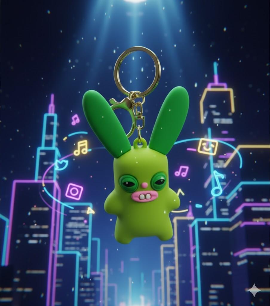 Фигурка выполнена в ярко-зеленом цвете, имеет характерные длинные уши, впалые глаза и смешные зубы, являющиеся частью стиля Fuggler. Благодаря крепкому кольцу и карабину, этот брелок станет заметным аксессуаром: