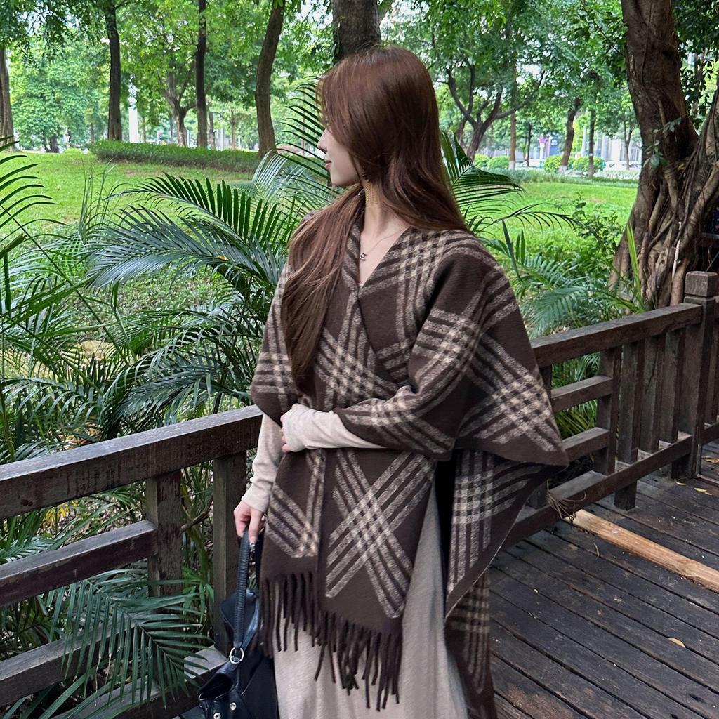 2025 New Women's High-End Color-Block Shawl Cape for Autumn and Winter Travel