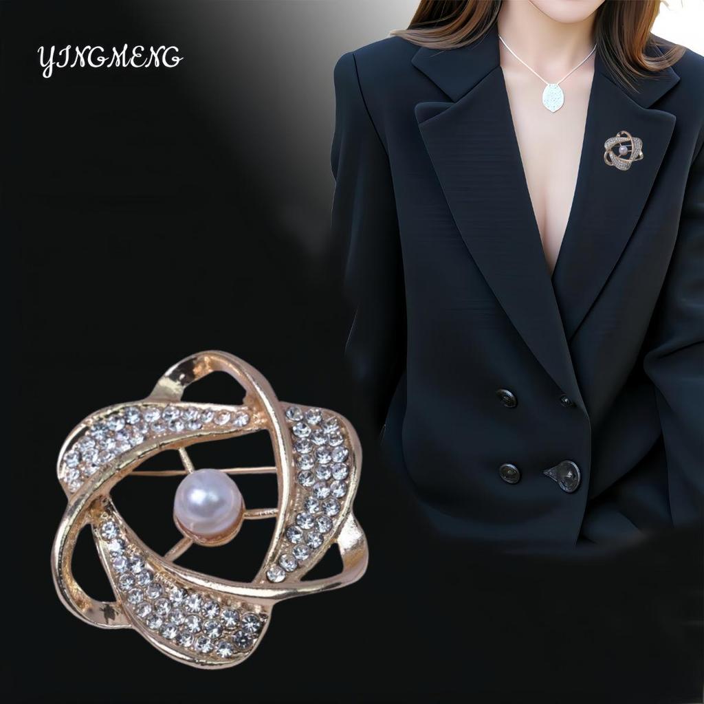 Dámský klip na šátek s kamínky: Japonský & Korejský Styl, Proti Odhalení, Módní, Luxusní, Všestranná Přezka na Připevnění, Multifunkční Brož.