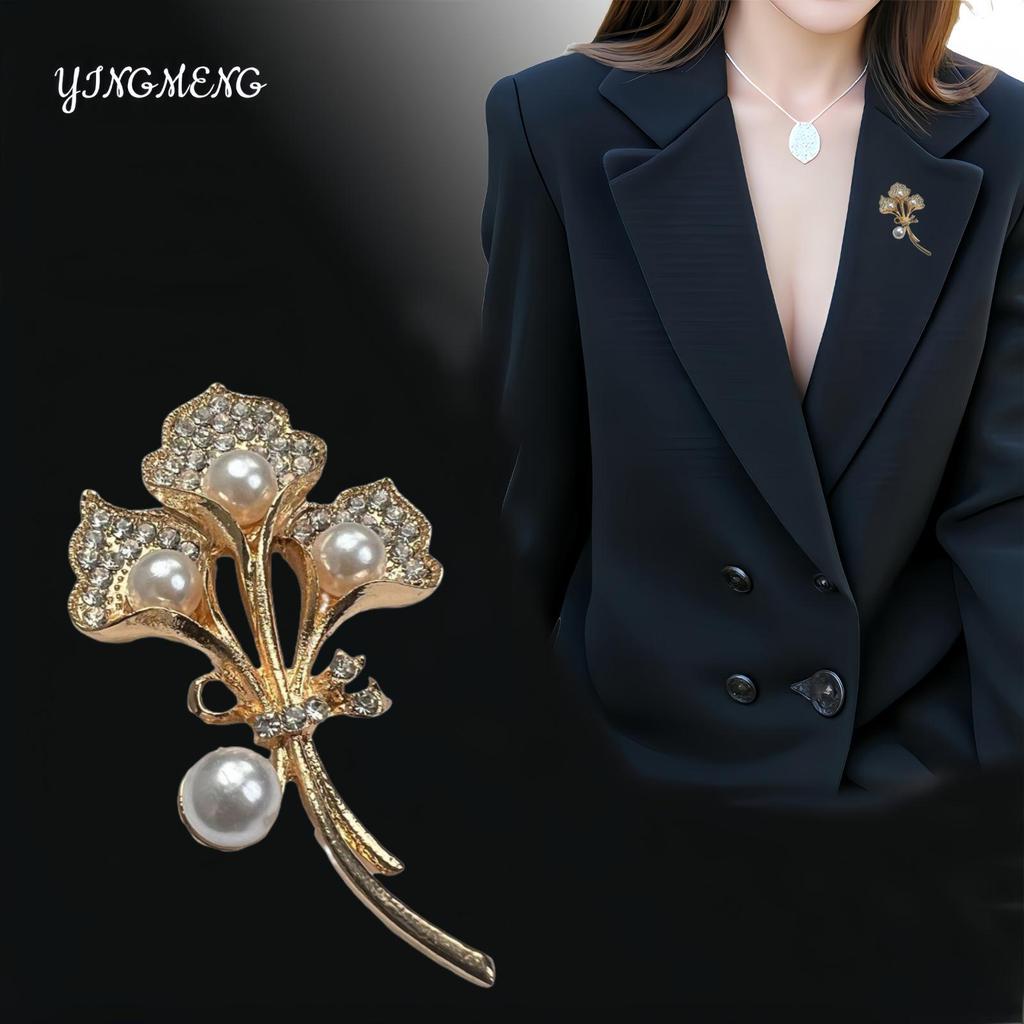Korean Rhinestone Pearl Calla Lily Brooch Scarf Pin