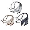 Bohemian Etnický Hedvábný Šátek Pás na Pas pro Ženy: Tkaná stuha, Kožený akcent, Perfektní k džínům a sukním