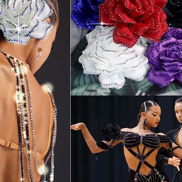 Set červených třpytivých květinových sponek do vlasů a náramku pro dívky na latinskoamerické tance