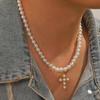 European and American Style Imitation Pearl Cross Necklace - Simple, Retro, Light Luxury Clavicle Chain, Unisex Fashion Accessory.