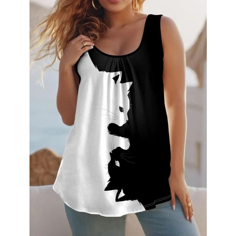 Summer Women's Sleeveless Vest Creative Personalized Animal Pattern Printing Comfortable Soft Oversized Fashionable Versatile Vest