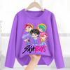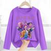 Cotton T-Shirts Girls Long Sleeve Children's Cartoon Printed Clothing Children's Purple Clothes Girls Crew Neck Top