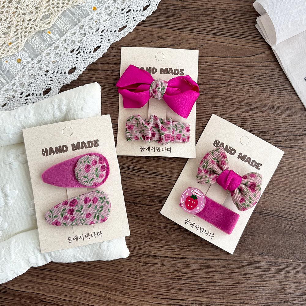 Korean Style Floral Bow Hair Clip for Girls - Bright Rose Red