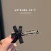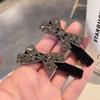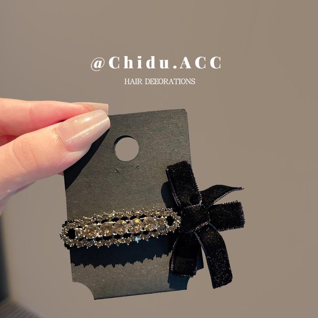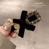 Korejská sametová sponka do vlasů s kamínkovou mašlí pro podzim/zimu