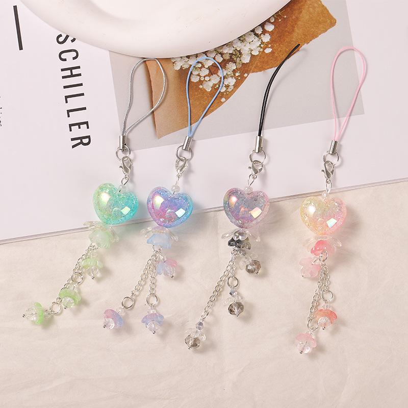 Sweet Ombre Floral Heart Phone and Bag Charm Chain