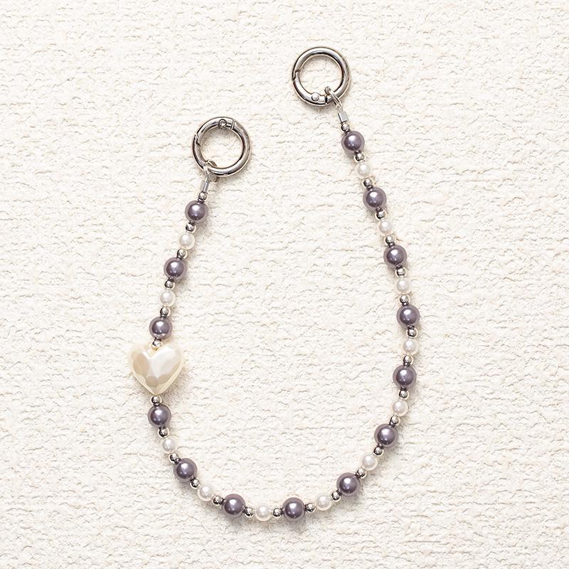 New Gray-Purple Heart Fairy Phone Lanyard: Anti-Drop Pearl Wrist Strap with High-End Appeal