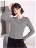 2025 Autumn Women's Round Neck Fishbone Shoulder Slimming Long Sleeve Top