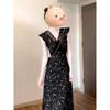 Experience elegance and sophistication with this exquisite black V-neck long dress, designed to flatter the figure by accentuating the waist. Ideal for early autumn fashion, it combines style and comfort, making it a versatile addition to your wardrobe. Crafted from high-quality materials, the dress ensures a graceful fit and feel, perfect for any occasion. Embrace timeless fashion with this beautifully tailored piece that exudes French chic.