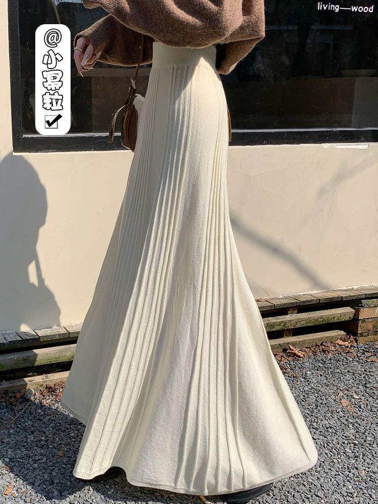 Pletená sukně áčkového střihu s vysokým pasem: Podzim/Zima Plisované Maxi