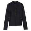 2025 Autumn Women's Long Sleeve Henley Top - Slim Fit Knit with Button Detail