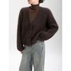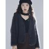 European & American Style Purple Faux Mink Velvet V-Neck Long-Sleeve Knitted Cardigan Sweater