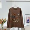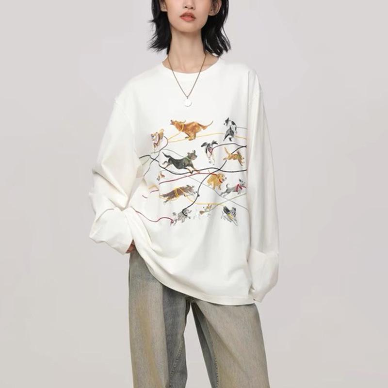 ID Podzimní Retro Štěně Potisk Vyšívané Tričko s Dlouhým Rukávem