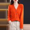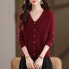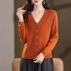 This elegant women's cardigan is crafted from 100% wool, offering a luxurious feel and lightweight comfort perfect for spring and autumn wear. Designed with a v-neckline and long sleeves, it provides a flattering fit that complements a petite frame. Ideal for layering, this versatile sweater combines style and warmth in a timeless design.