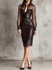 Evropské a americké úzké bodycon šaty s V-výstřihem a krajkovým lemováním z PU kůže pro ženy