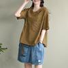 Retro Lace Loose Cotton and Linen Plaid Shirt Women's Short-sleeved Shirt Summer New Korean Top