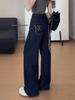 Dark Blue High-Waist Retro Straight-Leg Jeans for Women - Floor-Length, Wide-Leg Casual Pants for Autumn