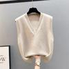 Knitted V-Neck Sleeveless Women's Cardigan Sweater - Korean Style, Loose Fit for Spring/Fall/Winter.