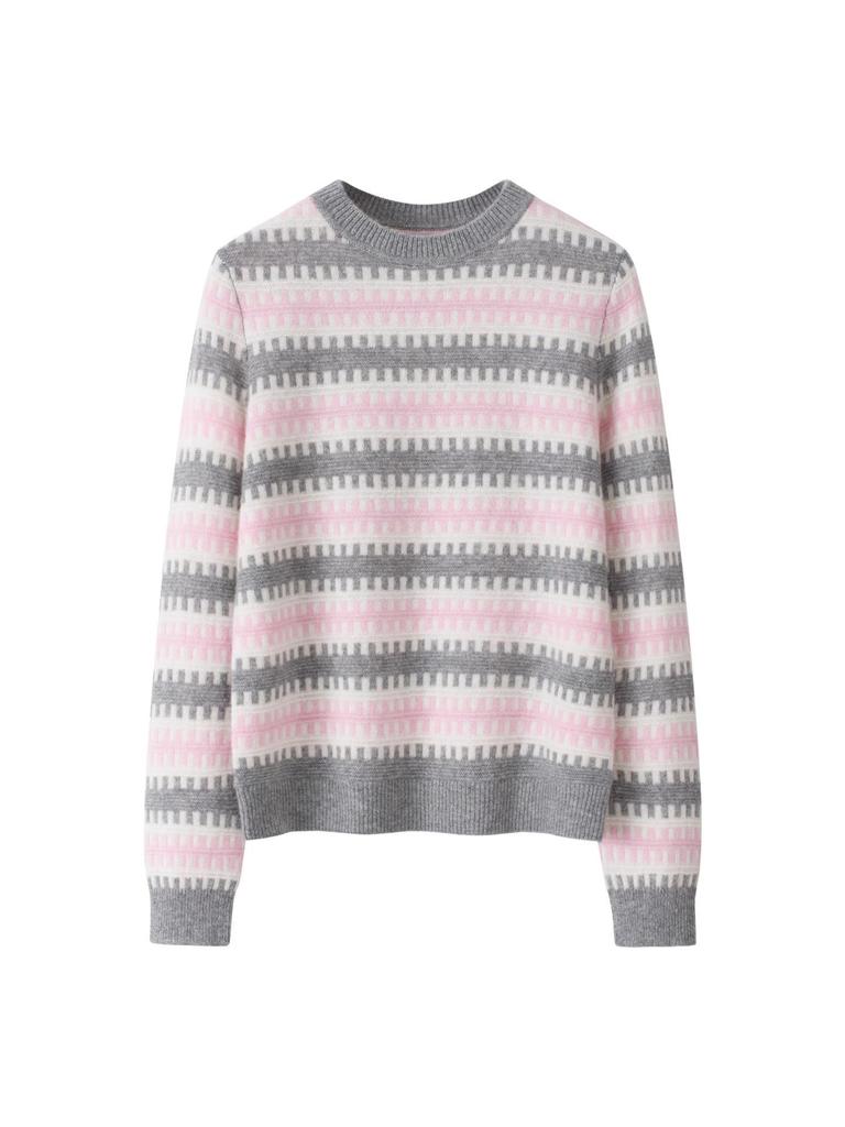 This women's sweater is crafted from luxurious cashmere, offering an exquisite blend of comfort and elegance. Designed with a loose fit, it provides both style and ease of movement, making it an ideal choice for effortless layering. The sweater features a classic round neckline and long sleeves, perfect for maintaining warmth during cooler days. Its jacquard pattern adds a touch of sophistication, making it a versatile addition to any wardrobe.