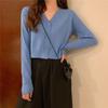 Women's Korean Style Loose Collar Knitted Cardigan - Long Sleeve High Waist Short Top for Spring and Autumn