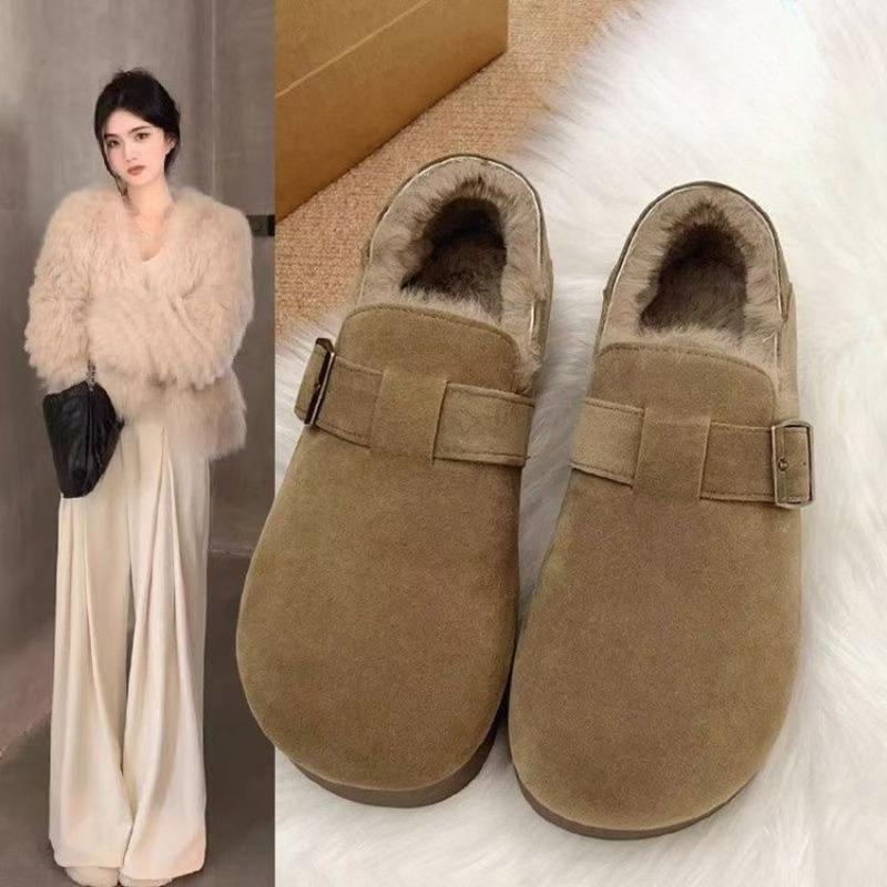 Warm Fleece Full-cover Shoes, Women's Versatile Thick-soled Shoes, Casual One-step Cotton Shoes