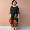 Experience timeless elegance with this beautifully designed midi dress, crafted specifically for middle-aged women seeking stylish comfort. Featuring a sophisticated floral pattern, this dress showcases a graceful ruffle collar and long sleeves, perfect for the transitional seasons of spring and autumn. Designed to create a flattering, layered look, the fake two-piece design adds a touch of modernity to the classic silhouette. Made from high-quality chiffon material, this dress promises both breathability and grace, ensuring you look and feel your best on any occasion. Plus size options are available to offer a perfect fit for everyone.