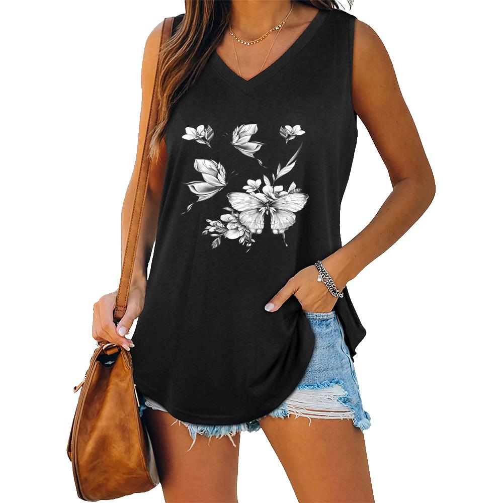 Summer Fashion Tank Top Women V Neck Shirt Ladies Casual Sleeveless T-shirt