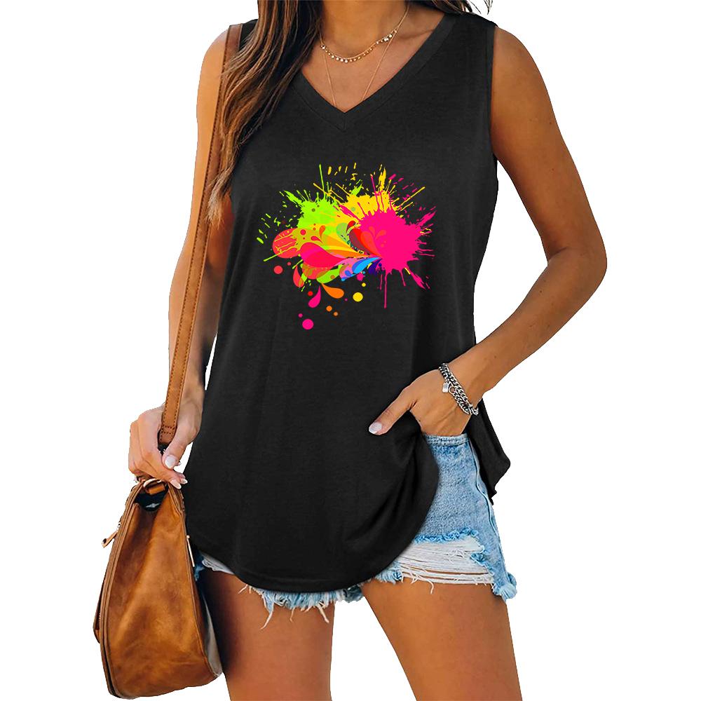 Women Fashion V Collar Tank Top Women Casual Sleeveless T-shirt