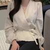 Chic Autumn/Winter Women's Waist-Gathering French Long Sleeve Shirt