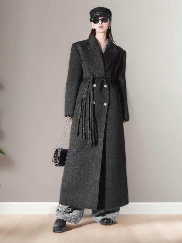 Dámský oboustranný kašmírový vlněný kabát - 2025 podzim/zima korejský módní styl.