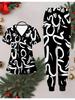 3D Leaf Printed Women's Nurse Uniform Set Short Sleeve Long Pants with Pocket Casual Fashionable Christmas Gift