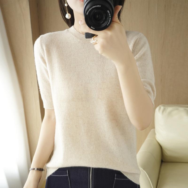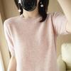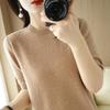 This stylish women's sweater top is crafted from a soft wool blend, featuring a plush core spun yarn for added comfort. The solid pattern and loose fit create a modern, relaxed look, while the half high neck and short sleeves add a touch of sophistication. The polyester material ensures durability and easy care, making it a versatile addition to your wardrobe for any season.