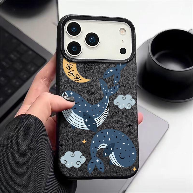 Měkký kryt s motivem velryby pro iPhone Air 17 16 Pro Max 15 14 13 12 Pro Max 11 16e nárazuvzdorný silikonový kožený texturovaný kryt