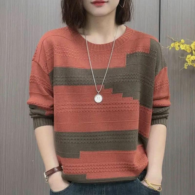 Women's Color Block Knitwear - Stylish Korean Slimming Top for Spring & Autumn