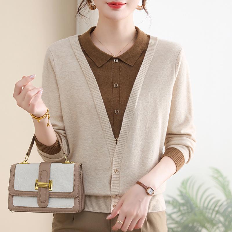2025 Mom's Stylish Knitted Base Sweater for Middle-Aged Women - Autumn/Winter Two-Piece Look