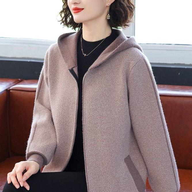 Módní pletený kardigan s kapucí 2025 pro středněvěké a starší ženy - Podzim/Zima