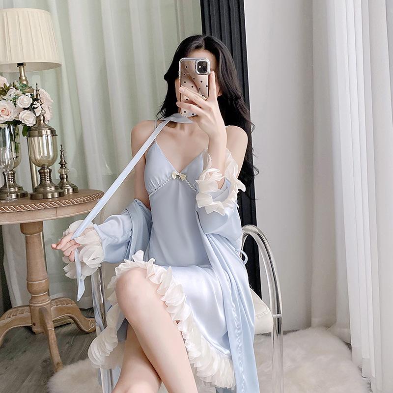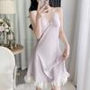 Dámské pyžamo z ledového hedvábí s V-výstřihem a volánky 2025 - Stylové, Sexy a Univerzální pro Domov nebo Ven