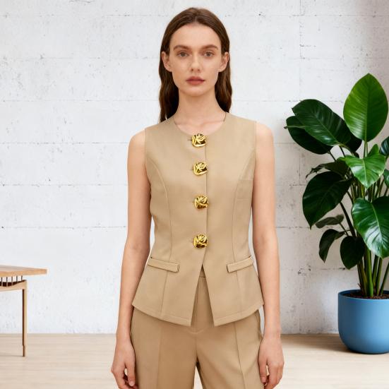 Dámské blejzrové šaty vestového střihu elegantní business bez rukávů oblekové vesta ležérní na knoflíky do kanceláře