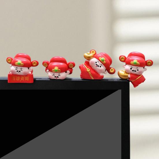 4 ks Kreslená figurka Dekorace na monitor počítače Ovoce Kočka Hasič Žirafa Bůh bohatství Socha Pryskyřičná socha Ozdoba na palubní desku auta