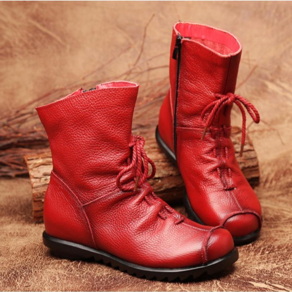 Ankle Boots Women's Autumn and Winter Retro Original Leather Short Boots Thermal Shoes New Low-heeled Women's Shoes Ankle Bootie