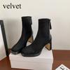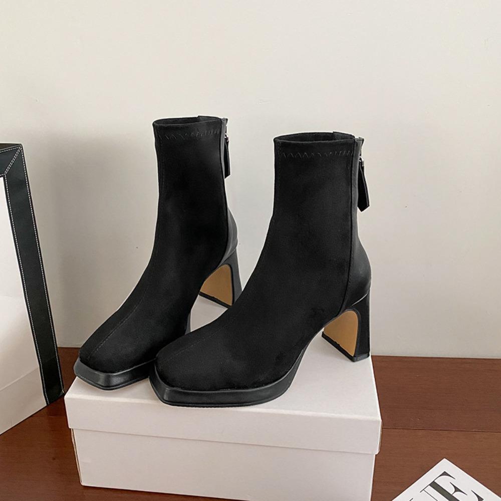 High Heels Women's Autumn and Winter New Suede Short Boots Thick Heels Slim Boots Black Square Toe Short Boots Womens platform