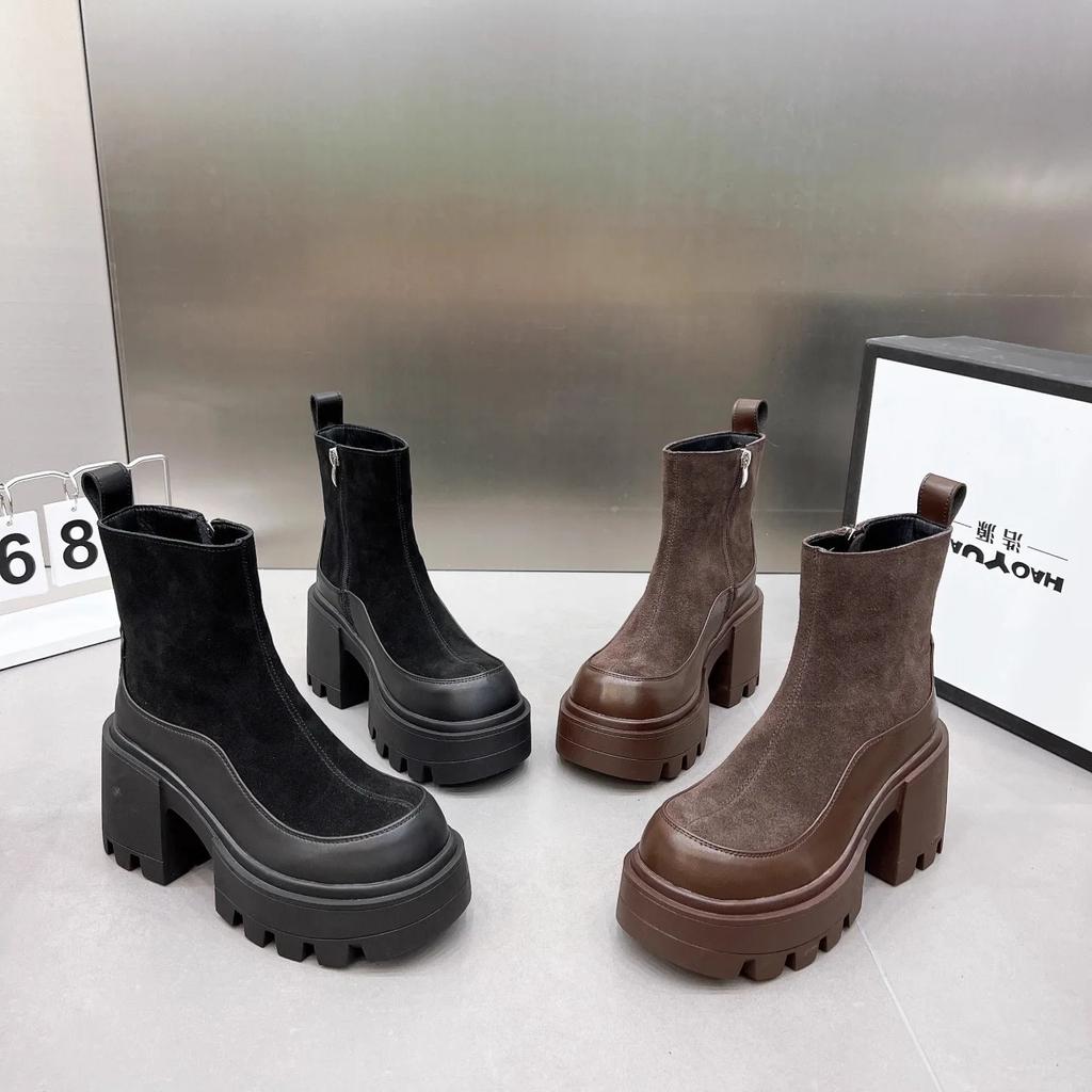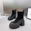 Spring and Autumn New Style Color blocked Thick Bottom Thick Heel Increased Height Round Head Short Boots High Heels