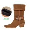 Krazing Po Flock Winter Pointed Toe Size 33 Western Boots Size 43 Metal Buckle Thick Heels Mid-calf Boots