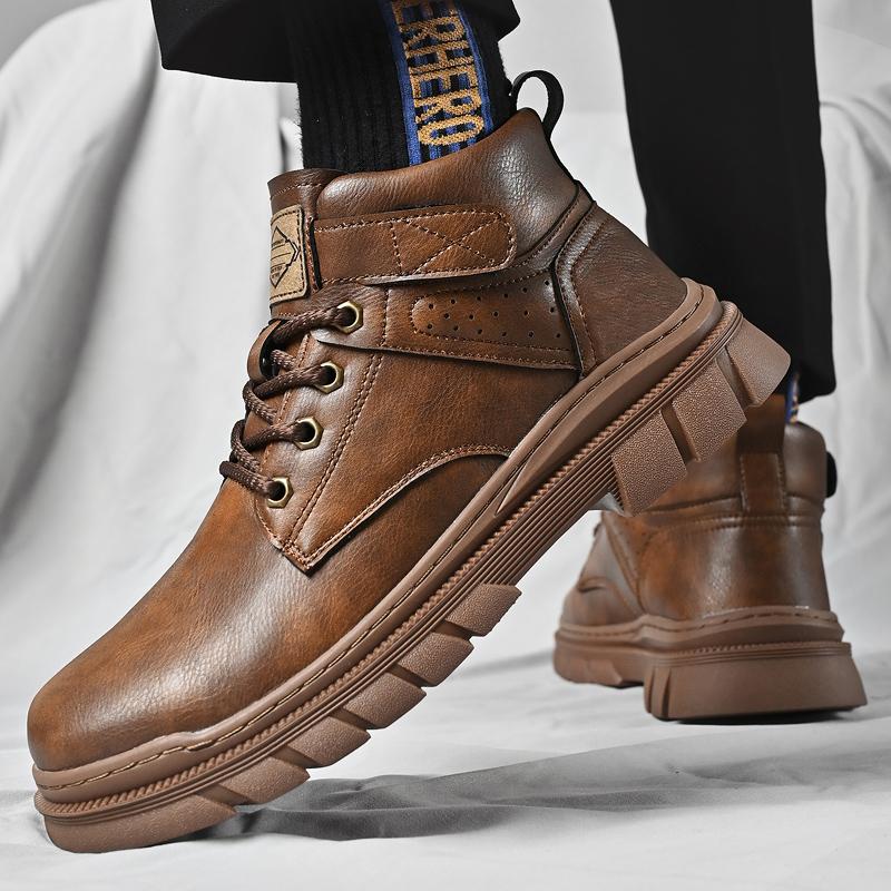 Fashion Casual Leather Mens Ankle Boots Short Outdoor Sneakers Classic Non-Slip Men Motorcycle Boots Handmade Man High Top Shoes